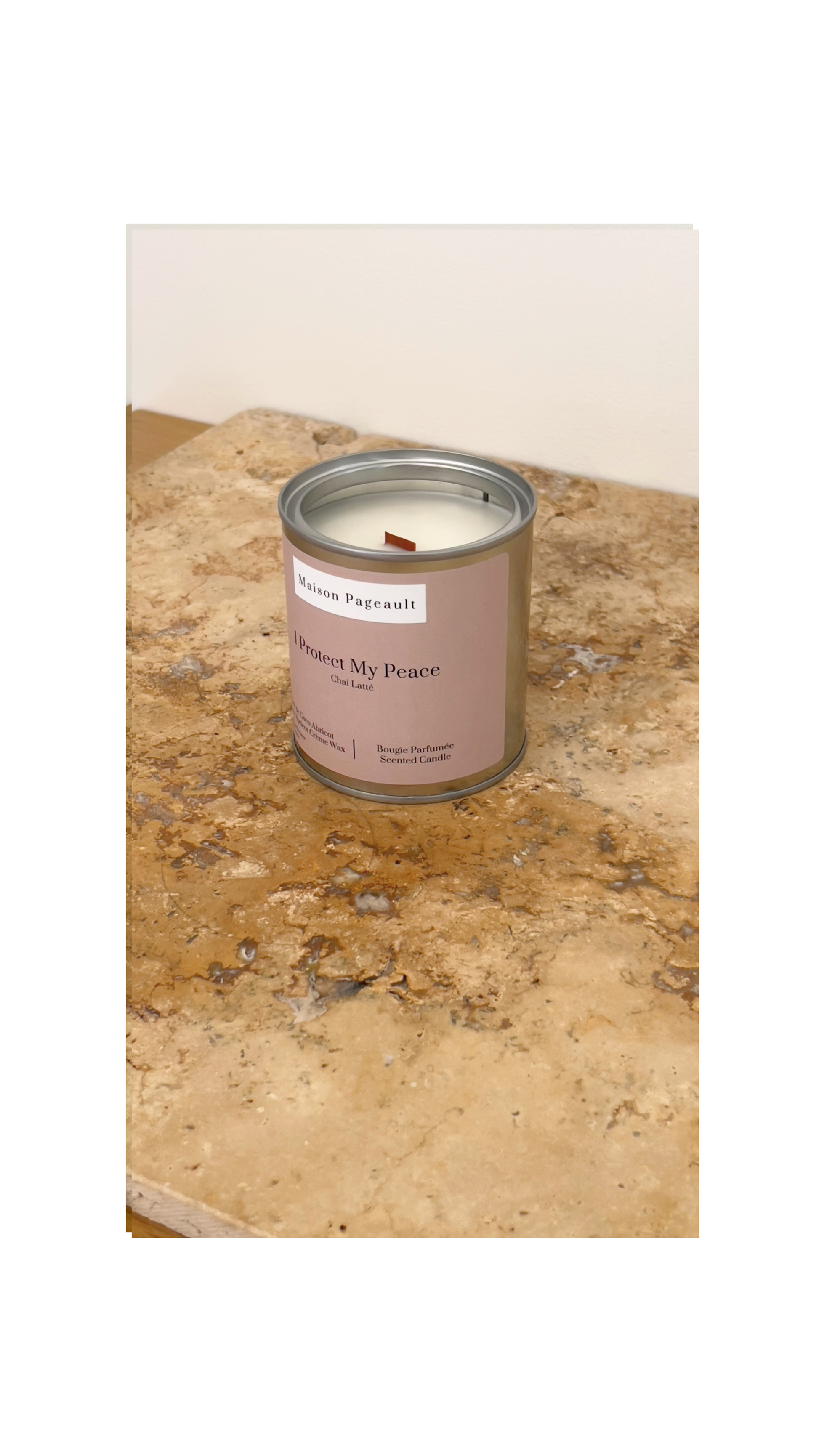 Ma cire signature à la crème de noix de coco et d'abricot est choisie pour son excellent parfum et ses propriétés de combustion propre, vous offrant une expérience de bougie haut de gamme et écologique.